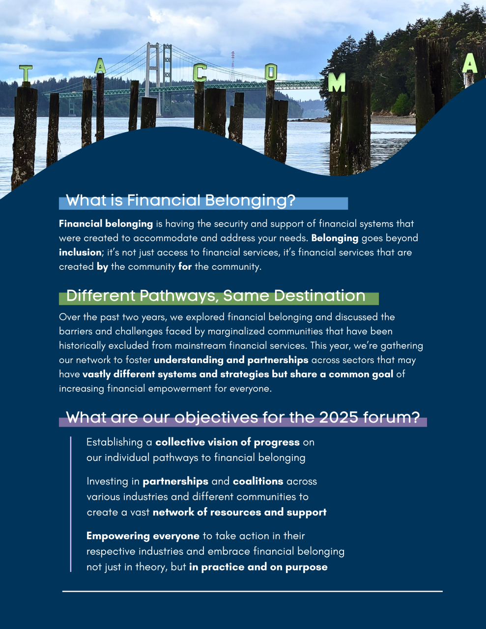 Start the day with a welcome from our MCs as they share what to expect from the forum and discuss what it means to have different Pathways to Financial Belonging.