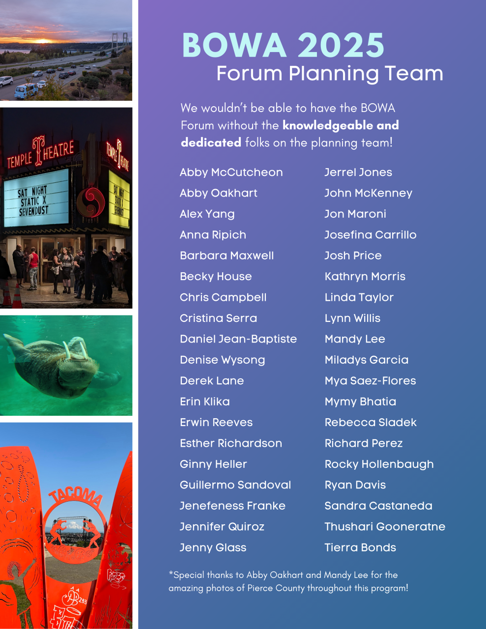 Abby McCutcheon & Jared Schapiro, Workforce Snohomish Josefina Carrillo, Latino Education & Training Institute (LETI) Rocky Hollenbaugh, United Indians of All Tribes Foundation | ||